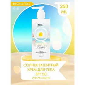 Солнцезащитный крем для тела с индексом SPF 50 поглощает более 98 % УФ-лучей, увлажняет и восстанавливает кожный покров. Фильтры нового поколения обеспечивают высокую антиоксидантную защиту от UVA и UVB, вызывающих фотостарение. Крем удерживает влагу и защищает от воздействия негативных факторов, дарит мягкость, эластичность и упругость. Аллантоин оберегает от обветривания и пагубного влияния солнца. Витамин Е улучшает насыщение клеток кислородом, способствует их обновлению и регенерации. Солнцезащитный крем успокаивает и смягчает без проявления стянутости и дискомфорта. Бархатисто-кремовая текстура санскрина легко распределяется по телу, не оставляет белых следов и ощущения липкости. Для сохранения защитных свойств, крем необходимо повторно нанести после контакта с водой. Подходит для всех типов кожи, в том числе для чувствительной. Без парабенов и MIT.