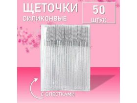 Ворсовые щеточки для ресниц с блестками белые 50 шт 4377504332