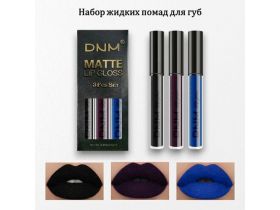 Набор из трех матовых жидких помад для губ черная, синяя, фиолетовая 102676194845