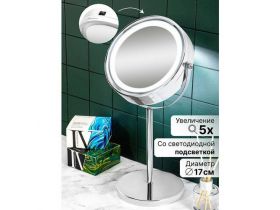 Зеркало двустороннее на подставке 20,5х13,5х36 см El Casa Хром, со светодиодной подсветкой, с 5-кратным увеличением 4361194693