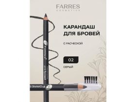 Карандаш для бровей Farres деревянный с щеточкой, тон 02 серый 103760290887