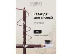 Карандаш для бровей Farres деревянный с щеточкой, тон 09 серо-коричневый 103760290888