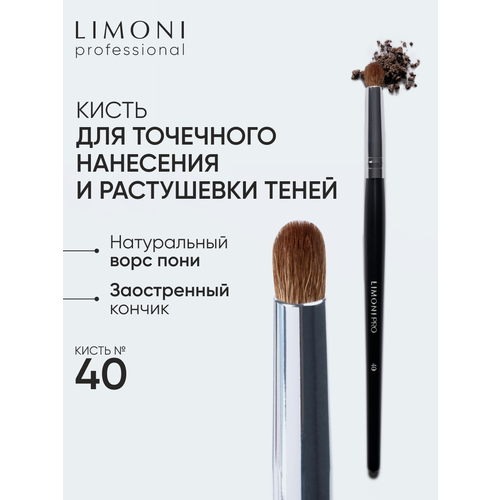 Кисть LIMONI Professional с заостренным кончиком идеально подходит для построения формы макияжа глаз, проработки нижнего века, затемнения внешнего уголка глаза и нанесения светлых оттенков теней и хайлайтеров во внутренний уголок. Ворс пони отличается мягкостью, а также позволяет быстро и легко наносить любой сухой косметический продукт. Ворс: пони; ручка: матовое дерево. Размеры кисти: общая длина - 18 см, длина ворса - 1,3 см.