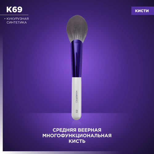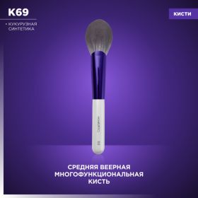 НАЙТИ ВЫГОДНЕЕ - Средняя многофункциональная веерная кисть для румян, коррекции, хайлайтера, пудры Manly PRO К69*