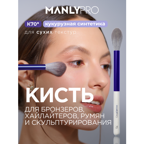 НАЙТИ ВЫГОДНЕЕ - Средняя факельная многофункциональная кисть для пудры, скульптурирования, бронзеров, хайлайтеров, румян MANLY PRO К70*