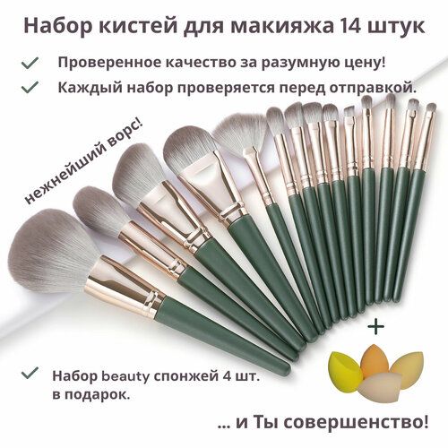 НАЙТИ ВЫГОДНЕЕ - Профессиональный набор кистей для макияжа 14 штук / Кисти для макияжа набор + beauty спонжи 4шт. в подарок