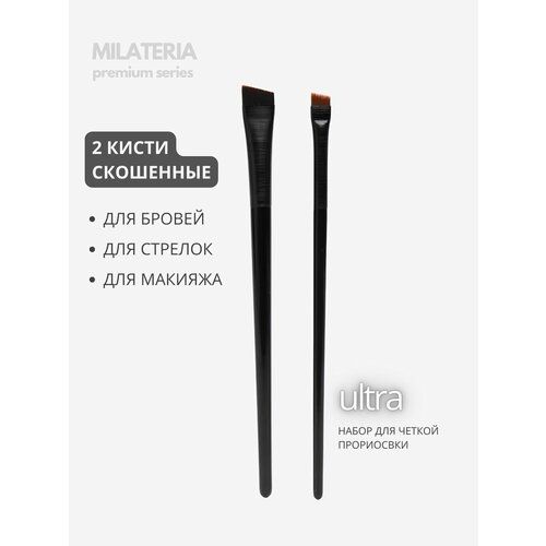 Набор профессиональных косметических скошенных плоских кистей 2 штуки.