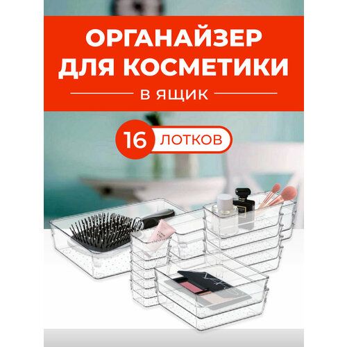 НАЙТИ ВЫГОДНЕЕ - Органайзер для косметики прозрачный в ящик. 16 отделений