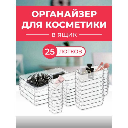 НАЙТИ ВЫГОДНЕЕ - Органайзер для косметики прозрачный в ящик. 25 отделений