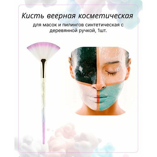 НАЙТИ ВЫГОДНЕЕ - Кисть веерная косметическая для масок и пилингов синтетическая с деревянной ручкой, 1шт