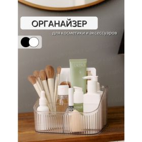Органайзер для косметики – стильный и практичный аксессуар для каждой девочки, девушки и женщины. Он позволит хранить все необходимое под рукой - косметику, кисти визажиста, инструмента для маникюра, ушные палочки, заколки, резинки и другие аксессуары. Можете поставить контейнер в ванную комнату, на стол, убрать в комод или выдвижной ящик, в любом случае его использование будет удобным. Даже на открытом туалетном столике он будет выглядеть стильно. Подойдет для хранения ватных дисков и палочек, духов, помад, лаков для ногтей, резинок, украшений, сережек, различных мелочей, канцелярии и даже лекарств. Оснащен 5 ячейками, отделениями, которые позволяют хранить продукты разных размеров и форматов. Благодаря этому Вы сможете легко ориентироваться и быстро найти нужное средство без лишних усилий. Контейнер не только функциональный, но и очень эстетичный. Выполнен из высококачественных материалов, которые обеспечивают прочность и долговечность. Стильные базовые цвета - черный и белый, современный дизайн подчеркивают индивидуальность, эстетику. Оргонайзер позволит создать уютное рабочее пространство на туалетном столике, комоде или письменном столе. Настольный пластиковый арганайзер для косметики и инструментов - идеальный подарок доя всех любителей макияжа и ухода за собой, для бьюти мастеров - например для маникюрных принадлежностей, кисточек, на стол бровиста или парикмахера. Если кажется что кантейнер маленький, не сомневайтесь - он вместит в себя содержимое большой косметички. Такие контейнеры и оргонайзеры помогут сохранить порядок и комфорт Вашей комнаты, прихожей, ванны - ведь в нем можно разместить любые мелочи для дома. Это прекрасная организация пространства даже на кухне в шкафу с ящиками. Позвольте себе наслаждаться удобством и порядком, которые предоставляет этот органайзер.