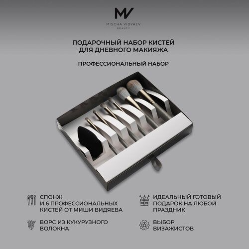 Набор кистей для дневного макияжа Dreamy Daytime от Mischa Vidyaev Beauty включает в себя все необходимые инструменты: для пудры, для тонального крема, румян, теней, хайлайтера, а также универсальный многофункциональный спонж. С помощью них вы сможете легко и быстро создать и нанести дневной макияж, , подчеркнуть скулы или, например, выделить глаза.