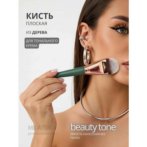 Премиальная густая, скошенная кисть из натурального дерева от бренда "Milateria" - идеальный инструмент для нанесения жидких продуктов.Благодаря мягкому и нежному ворсу, можно легко распределить покрытие максимально тонким слоем без эффекта полос и получить безупречный макияж.