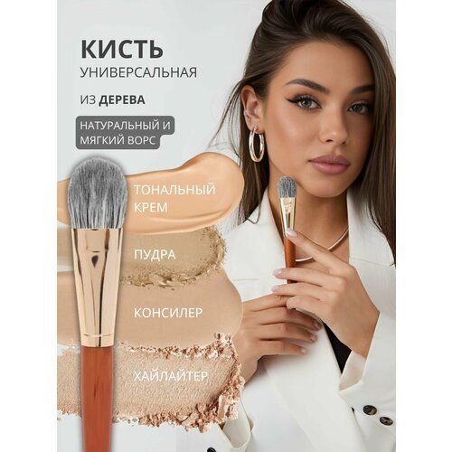 НАЙТИ ВЫГОДНЕЕ - Универсальная кисть для нанесения тона, скульптора, пудры и румян - премиум, деревянная ручка