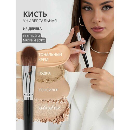 НАЙТИ ВЫГОДНЕЕ - Универсальная кисть для нанесения тона, скульптора, пудры и румян - премиум, деревянная ручка