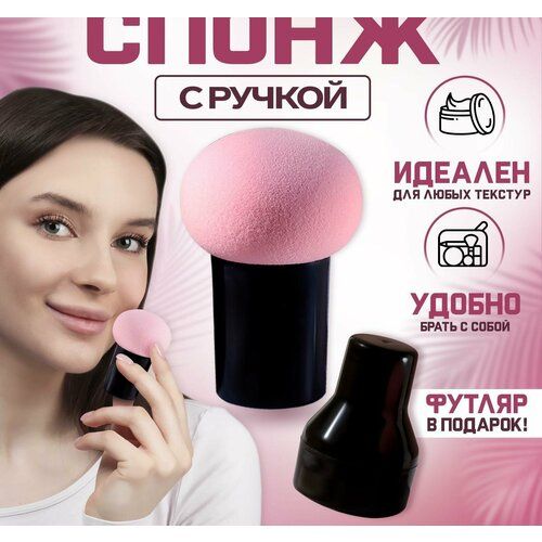 НАЙТИ ВЫГОДНЕЕ - Спонж для макияжа с ручкой Стик, d 4,1 * 3 см, в футляре, цвет чёрный/розовый