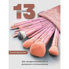Набор кистей состоит из 13 кистей для макияжа с удобной сумкой/чехлом. Кисти для макияжа выполнены из высококачественного гипоаллергенного синтетического волокна. Ворс кистей набит плотно, не лезет, мягкий, не вызывает раздражения. Комплект кистей подойдет для профессионального или домашнего использования. Косметический набор идеально подойдет для подарка подруге, жене, сестре, маме, коллеге. В набор входит удобная сумка/чехол, что предоставит Вам возможность носить кисти с собой или удобно хранить дома. Спеши порадовать себя и своих близких. Профессиональный макияж у Вас дома. В набор входит: кисточка для пудры, кисть для конутринга, кисть для румян, кисть скошенная для скульптора, кисть для кремовых текстур, кисть для макияжа глаз, кисть для теней, кисть для растушовки, кисть для бровей, кисть для проработки нижнего века, кисть для губ. Прекрасно подойдет для контуринга лица. Все для макияжа в одном наборе. Идеальный подарок на праздник для девушки, жены, подруги, мамы.