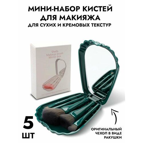 Набор кистей из пяти штук для макияжа, упакованный в стильный футляр-ракушка с компактным зеркалом, представляет собой идеальное решение для создания безупречного образа в любое время и в любом месте.
