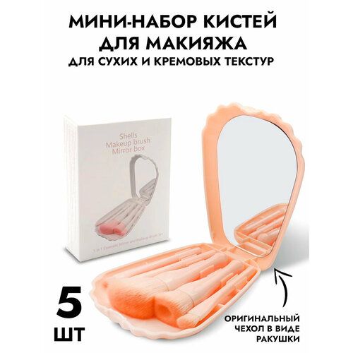 Набор кистей из пяти штук для макияжа, упакованный в стильный футляр-ракушка с компактным зеркалом, представляет собой идеальное решение для создания безупречного образа в любое время и в любом месте.