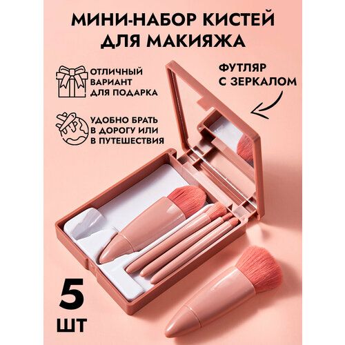 Набор кистей из пяти штук для макияжа, упакованный в стильный футляр с компактным зеркалом, представляет собой идеальное решение для создания безупречного образа в любое время и в любом месте.