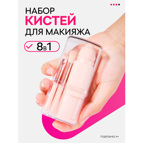 НАЙТИ ВЫГОДНЕЕ - Дорожный набор кистей для макияжа в футляре, искусственные волокна, розовые