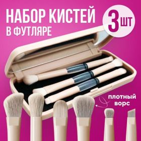 НАЙТИ ВЫГОДНЕЕ - Кисти косметические для макияжа в футляре, набор 3 шт. бежевые, кисть для румян, теней, хайлайтера, помады, бровей