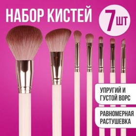 НАЙТИ ВЫГОДНЕЕ - Кисти косметические для макияжа, набор 7 шт. белые, комплект: кисть для тональника, пудры, румян, теней, бровей, помады