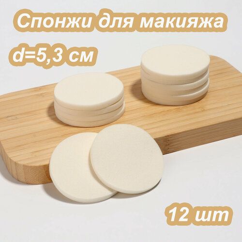НАЙТИ ВЫГОДНЕЕ - Спонж для макияжа, диаметр 5.3 см, материал - латекс, цвет - белый, набор 12 шт