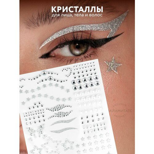 НАЙТИ ВЫГОДНЕЕ - MIAMITATS Стразы для макияжа лица, тела и волос Silver Star самоклеящиеся