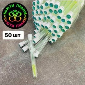 НАЙТИ ВЫГОДНЕЕ - Щеточки для ресниц и бровей в колбе 50 штук, Салатовые, ручка с блёстками