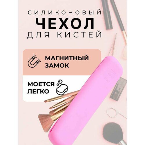НАЙТИ ВЫГОДНЕЕ - Чехол для кистей для макияжа (футляр для кистей) на магнитах, розовый