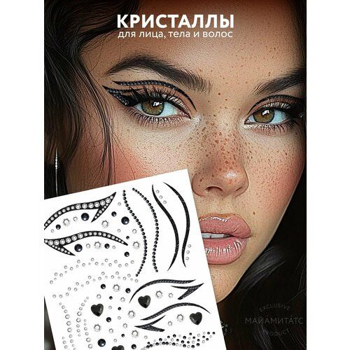 НАЙТИ ВЫГОДНЕЕ - MIAMITATS Стразы для макияжа лица, тела и волос Black cat самоклеящиеся