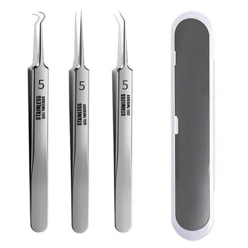 НАЙТИ ВЫГОДНЕЕ - Набор пинцетов в футляре для удаления черных точек, 3шт, сталь
