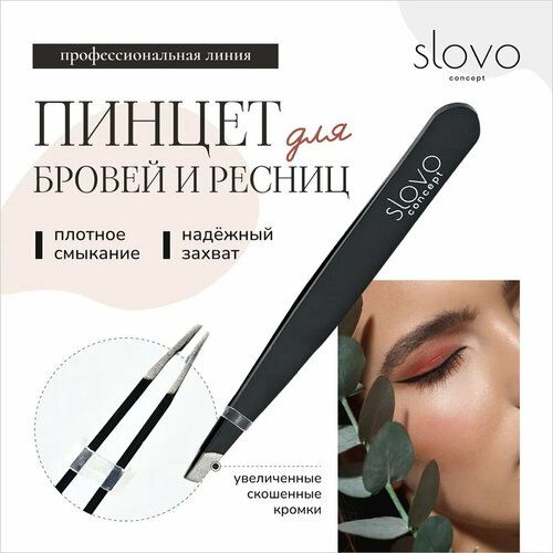 НАЙТИ ВЫГОДНЕЕ - Пинцет для бровей Slovo профессиональный скошенный / щипчики для бровей и ресниц