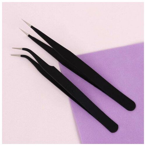 НАЙТИ ВЫГОДНЕЕ - Набор пинцетов д/наращ ресниц 2шт L-изгиб 12,5*1см прям 12,5*1см пакет QF 3967580
