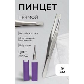 НАЙТИ ВЫГОДНЕЕ - Пинцет прямой, узкий, 9 см, в футляре, Разноцветный