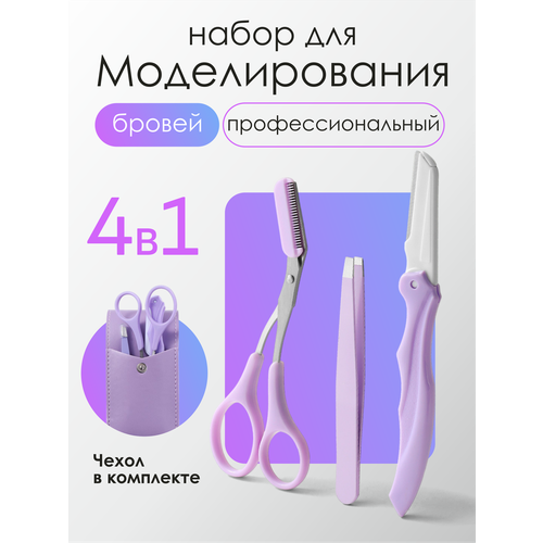 НАЙТИ ВЫГОДНЕЕ - Набор для моделирования бровей (ножницы, пинцет, лезвие) с нескользящей ручкой