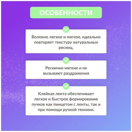 Ресницы для наращивания в уникальном оттенке Мокка: глубокий коричневый цвет без рыжего и зеленого отлива. Один из самых трендовых оттенков на сегодняшний день не теряют изгиб и не заламываются. Волокно легкое и мягкое, идеально повторяет текстуру натуральных ресниц. Насыщенный и глубокий цвет от основания до самого кончика. Ресницы в палетке одна к одной: всегда точно соответствуют заявленным параметрам. Оптимальная клейкость ленты обеспечивает легкое и быстрое формирование пучков для объемного наращивания - как пинцетом с ленты, так и при помощи ручной техники. С палетками очень комфортно работать. Подложка с клейкой обратной стороной позволяет закрепить ресницы на планшете. На каждой линии указаны полные параметры: толщина, изгиб, длина. Информация всегда останется перед глазами, даже если вы перенесете на планшет одну линию.
