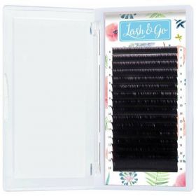 Классические чёрные ресницы для наращивания Lash&Go из качественного упругого моноволокна с равномерным насыщенным цветом до самых кончиков.