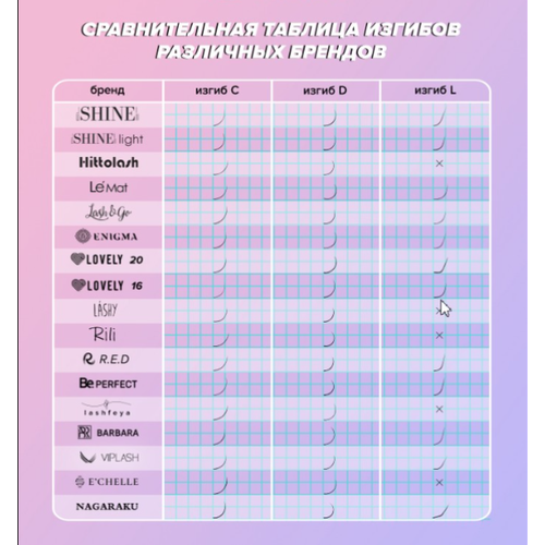 Вы можете выбрать палетку на 16 линий с одной длиной ресниц от 6 до 14 мм.