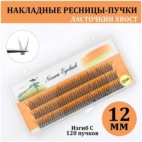 НАЙТИ ВЫГОДНЕЕ - NESURA / Накладные ресницы пучки / Ресницы Ласточкин хвост / Длина: 12мм / Рыбий хвост / для макияжа и визажиста