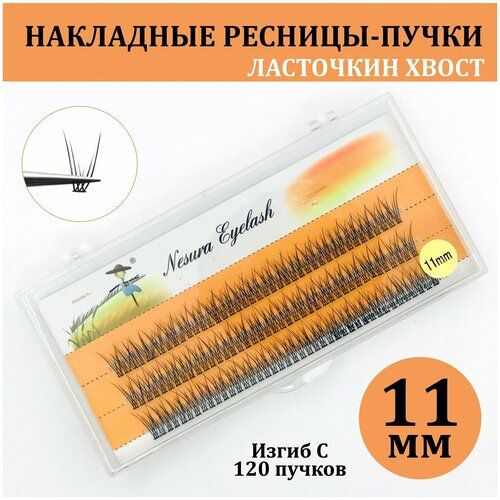 НАЙТИ ВЫГОДНЕЕ - NESURA / Накладные ресницы пучки / Ресницы Ласточкин хвост / Длина: 11мм / Рыбий хвост / для макияжа и визажиста
