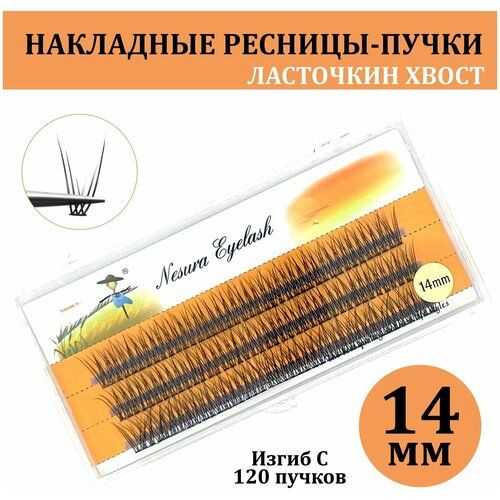 НАЙТИ ВЫГОДНЕЕ - NESURA / Накладные ресницы пучки / Ресницы Ласточкин хвост / Длина: 14мм / Рыбий хвост / для макияжа и визажиста