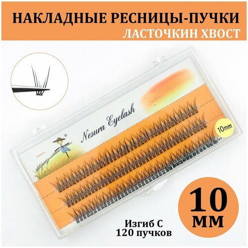 НАЙТИ ВЫГОДНЕЕ - NESURA / Накладные ресницы пучки / Ресницы Ласточкин хвост / Длина: 10мм / Рыбий хвост / для макияжа и визажиста