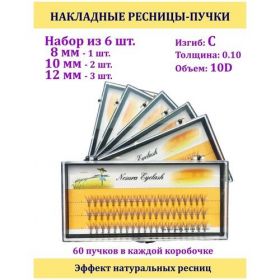 НАЙТИ ВЫГОДНЕЕ - NESURA / 10D / Накладные пучки ресниц / Набор MIX 6шт / 8,10,12мм 0.1, изгиб С / 10Д / Накладные ресницы в пучках MIX / для макияжа и визажиста
