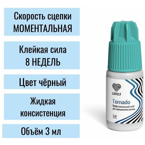 НАЙТИ ВЫГОДНЕЕ - Lovely Клей черный для наращивания ресниц Tornado, 3 мл/ Лавли Торнадо