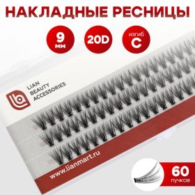 НАЙТИ ВЫГОДНЕЕ - Накладные пучки ресниц объем 20D, толщина 0.10 мм, изгиб С, длина 9мм, 60 пучков, Lian Beauty Accessories