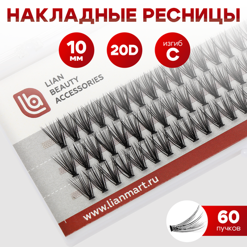НАЙТИ ВЫГОДНЕЕ - Накладные пучки ресниц объем 20D, толщина 0.10 мм, изгиб С, длина 10мм, 60 пучков, Lian Beauty Accessories