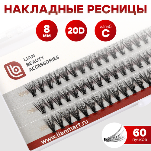 НАЙТИ ВЫГОДНЕЕ - Накладные пучки ресниц объем 20D, толщина 0.10 мм, изгиб С, длина 8мм, 60 пучков, Lian Beauty Accessories