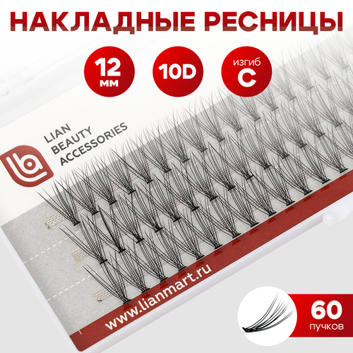 НАЙТИ ВЫГОДНЕЕ - Накладные пучки ресниц объем 10D, толщина 0.10 мм, изгиб С, длина 12 мм, 60 пучков, Lian Beauty Accessories